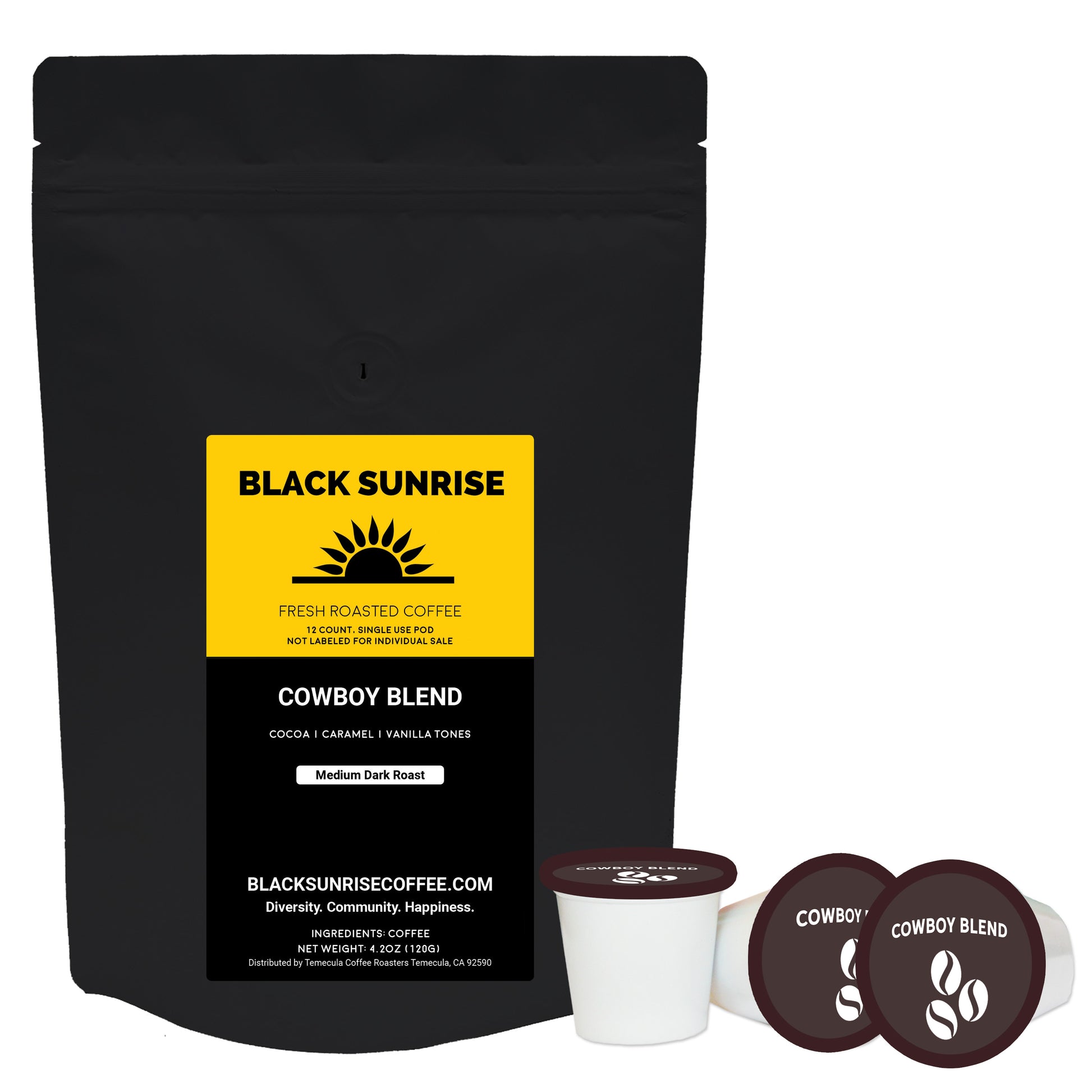 12 count, Single-Use cups; filled with our Cowboy Blend